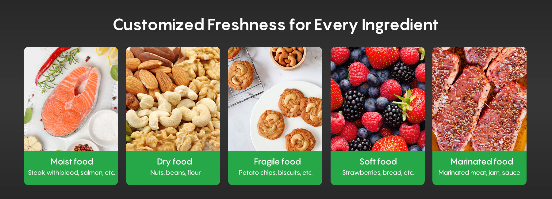 Intelligent identification of both the bag and the food type simplifies the vacuum sealing process. This smart automation frees your hands from manual settings. The machine expertly detects whether it's a dry or moist item, and potentially even the bag material, ensuring optimal vacuum and sealing for perfect preservation every time, effortlessly.