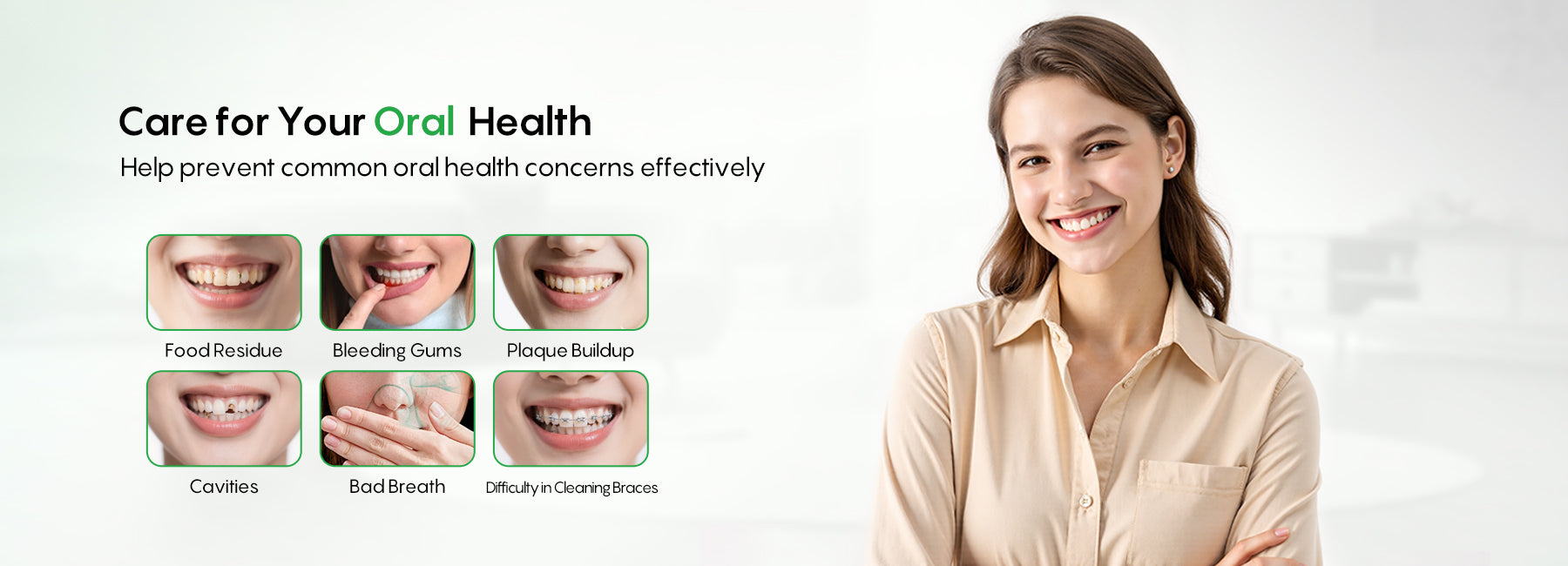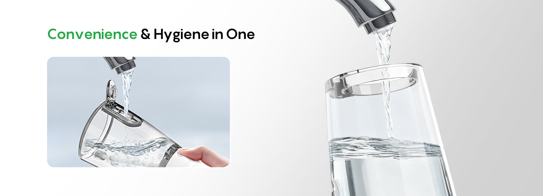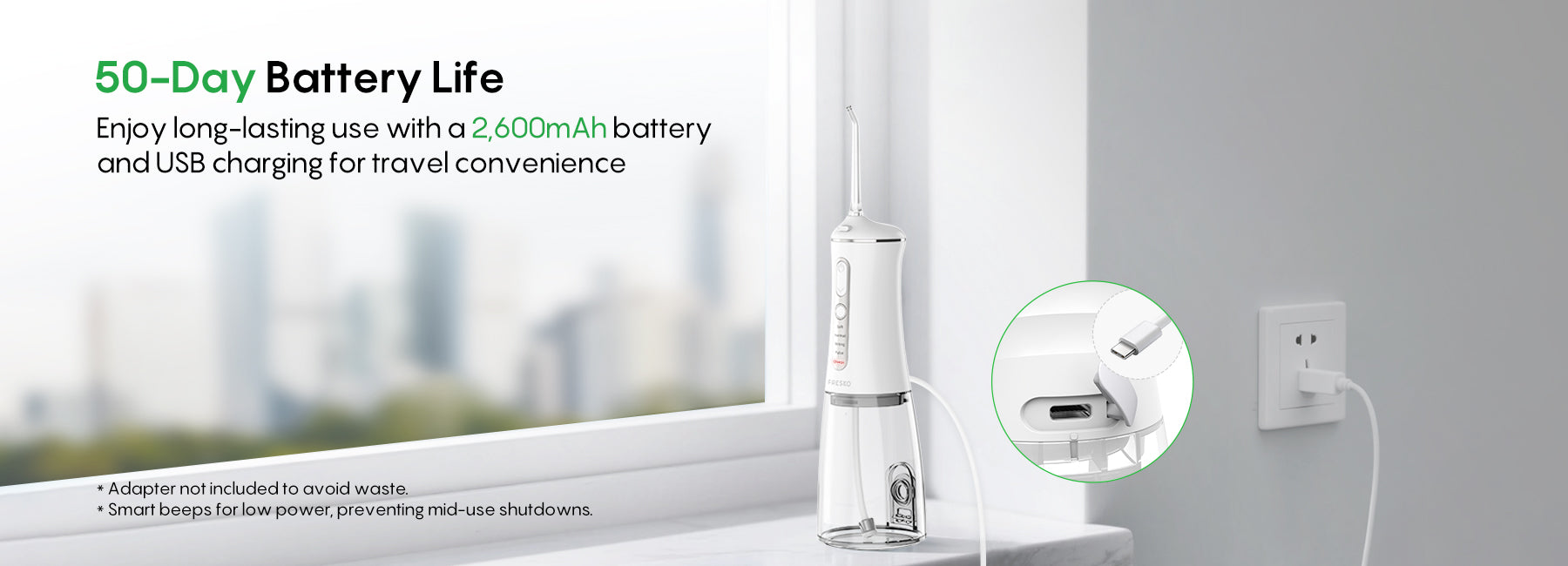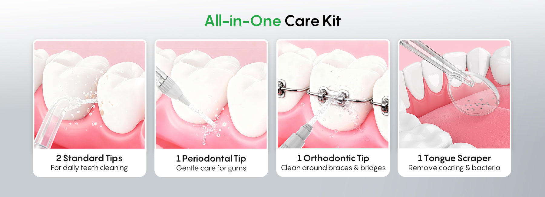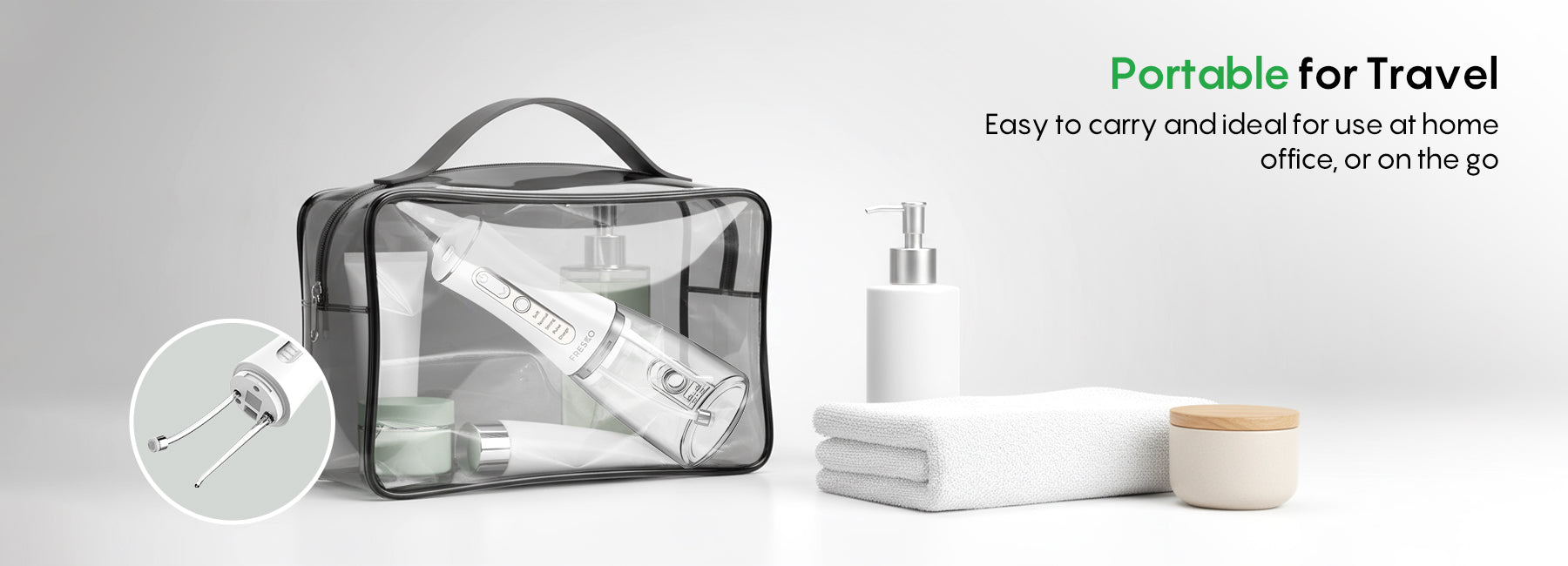 Unleash your mouth's full cleaning potential with the FRESKO Water Flosser. It combines a high-frequency pulse of up to 1400-1800 pulsations per minute with a 360° rotating precision nozzle to powerfully and gently remove stubborn plaque and food debris from between teeth and below the gumline.