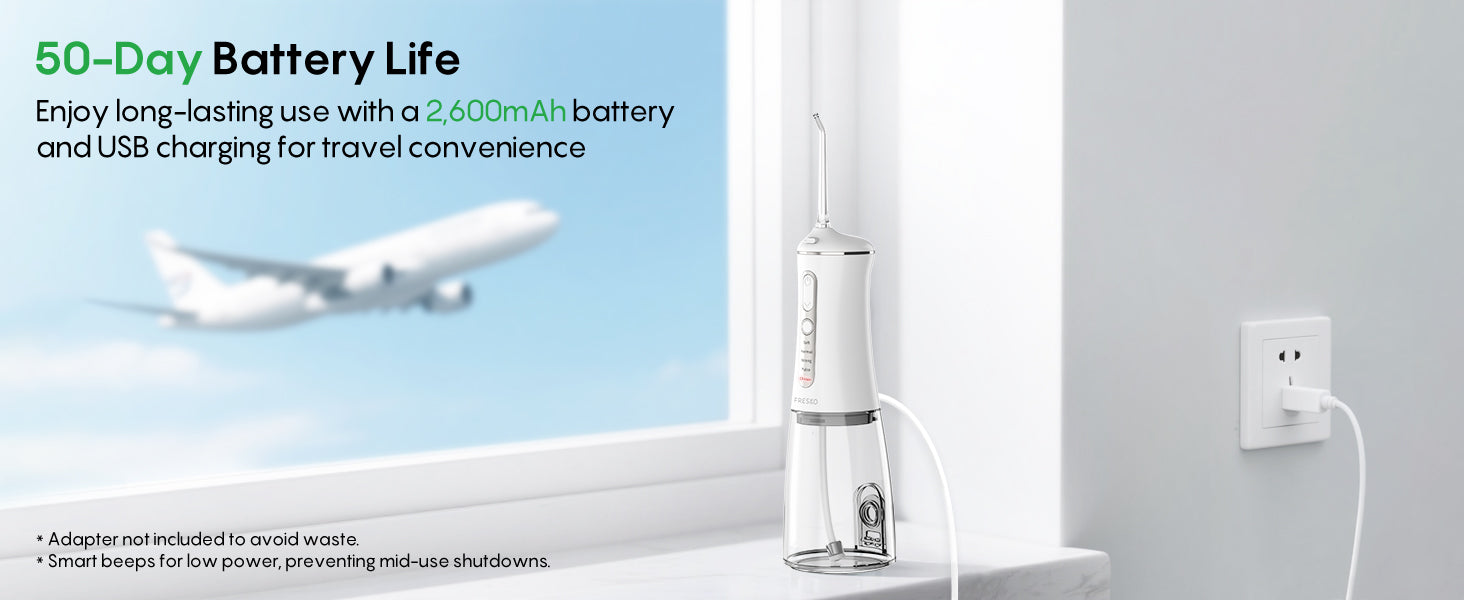 - Constant Pressure Technology – Power That Never Drains: Unlike conventional cordless flossers that lose pressure as the battery depletes, our innovative technology ensures a consistently stable and optimal water stream from the first use to the 50th day. Enjoy a reliable, comfortable, and powerful clean every single time, guaranteed.